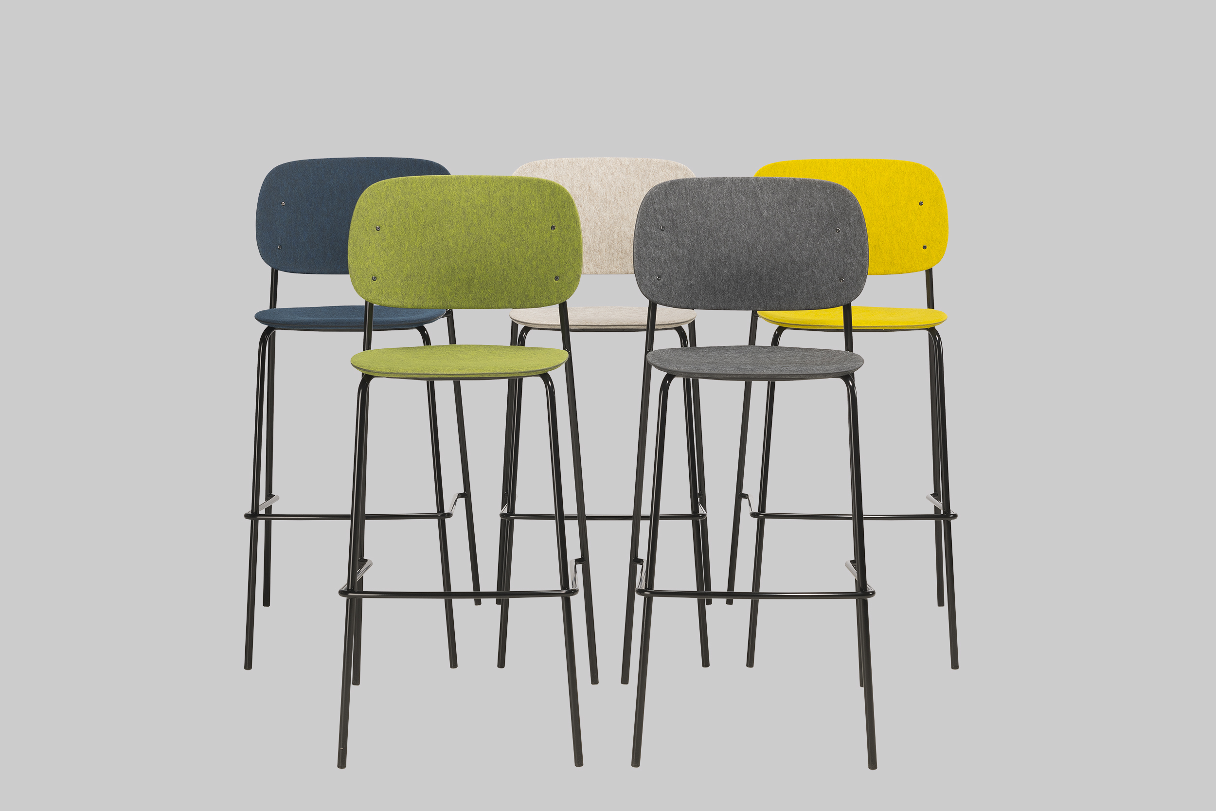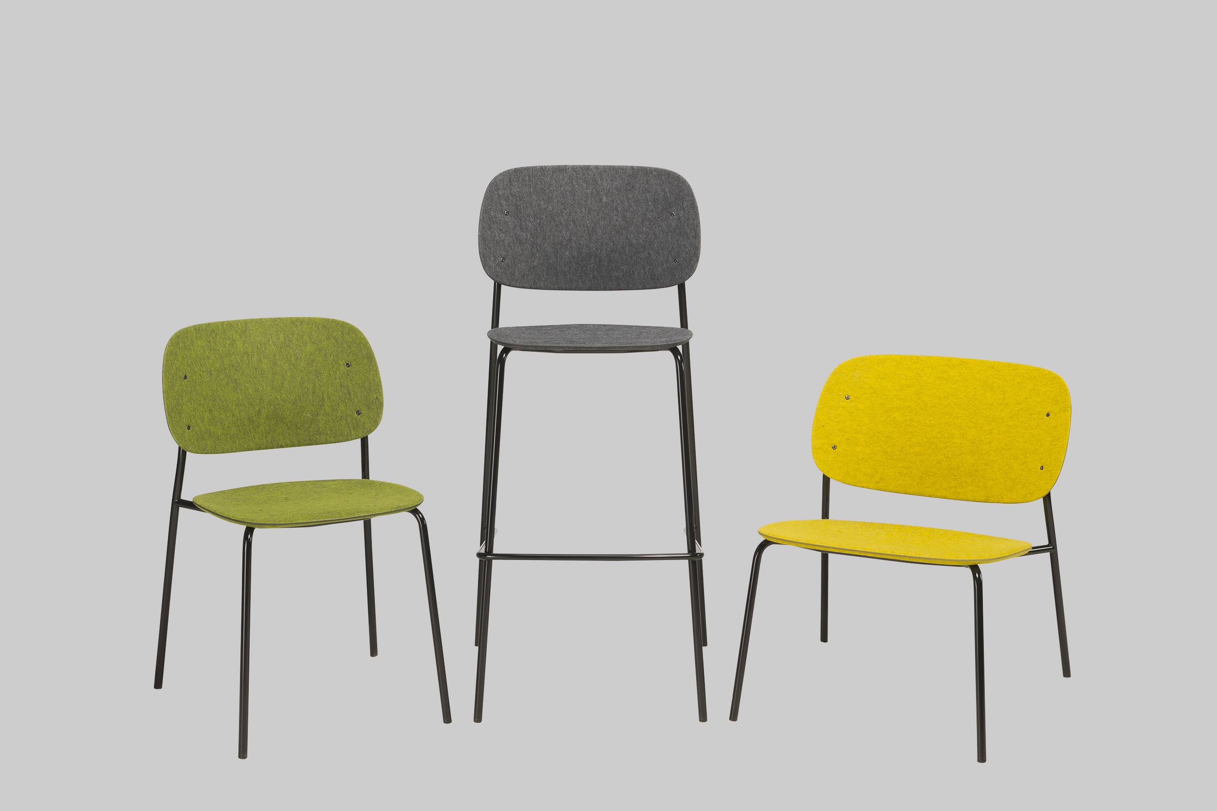 Der Barhocker HALE STACK in Dunkelgrau und Schwarz basiert auf dem Hale-Stuhl: einfach, funktional und geradlinig. Dies zeigt sich nicht nur in der Ästhetik, sondern auch im Aufbau. Sitzfläche und Rückenlehne bestehen aus PET-Filz - recycelten Plastikflaschen. Diese Technologie vereint viele traditionelle Produktionsprozesse in einer intelligenten 3D-Pressmethode. Hale wurde in Zusammenarbeit zwischen De Vorm und Ivan Kasner entwickelt und verkörpert gemeinsame Werte, was zu einem Produkt von eleganter Einfachheit führt. Das Design bietet Vielseitigkeit und ist daher für verschiedene Räume geeignet.