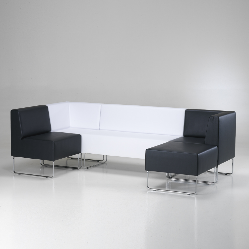 BB263Das Eckelement HOST in Weiß bietet eine minimalistische und moderne Optik, die sich perfekt für vielseitige Einsatzmöglichkeiten eignet. Die Kombination aus weißem Ecoleder und einem robusten Chromgestell verleiht diesem Möbelstück eine zeitlose Eleganz. Mit einer Sitzhöhe von 46 cm und Maßen von 62 x 62 cm ist es ideal für Lounges, Empfangsbereiche oder als stilvolle Ergänzung in Büroeinrichtungen. Miete das Eckelement HOST!