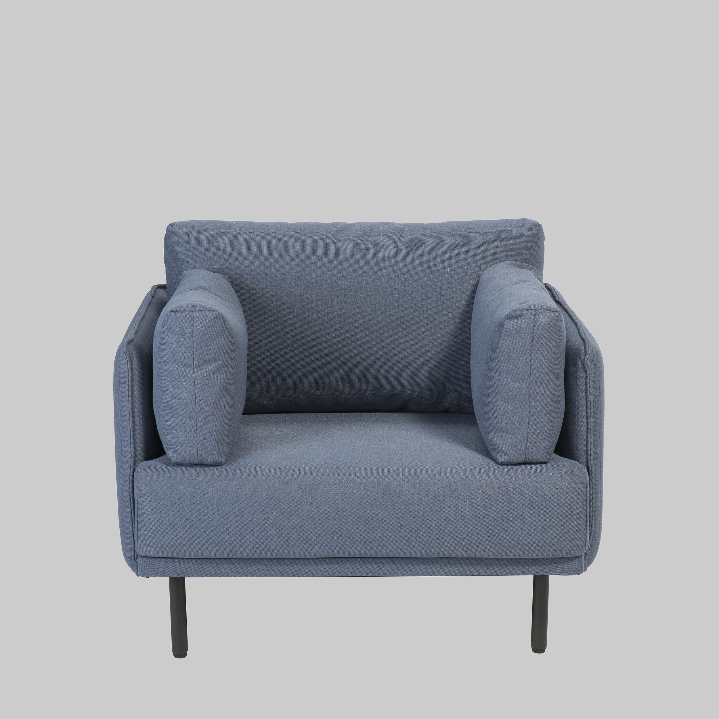 Der Sessel KIARA in Blau überzeugt mit einem ruhigen, modernen Look und bietet komfortables Sitzen für Messen und Events. Mit 82 cm Höhe, 99 cm Breite und 84 cm Tiefe schafft er viel Platz, ohne wuchtig zu wirken. Die Sitzhöhe von 42 cm eignet sich gut für Loungebereiche oder Empfangssituationen. Der blau bezogene Stoff wirkt wertig und setzt einen frischen Akzent, während die schwarzen, lackierten Metallbeine Stabilität geben. Die weich geformten Armlehnen unterstützen entspanntes Sitzen über längere Zeit.