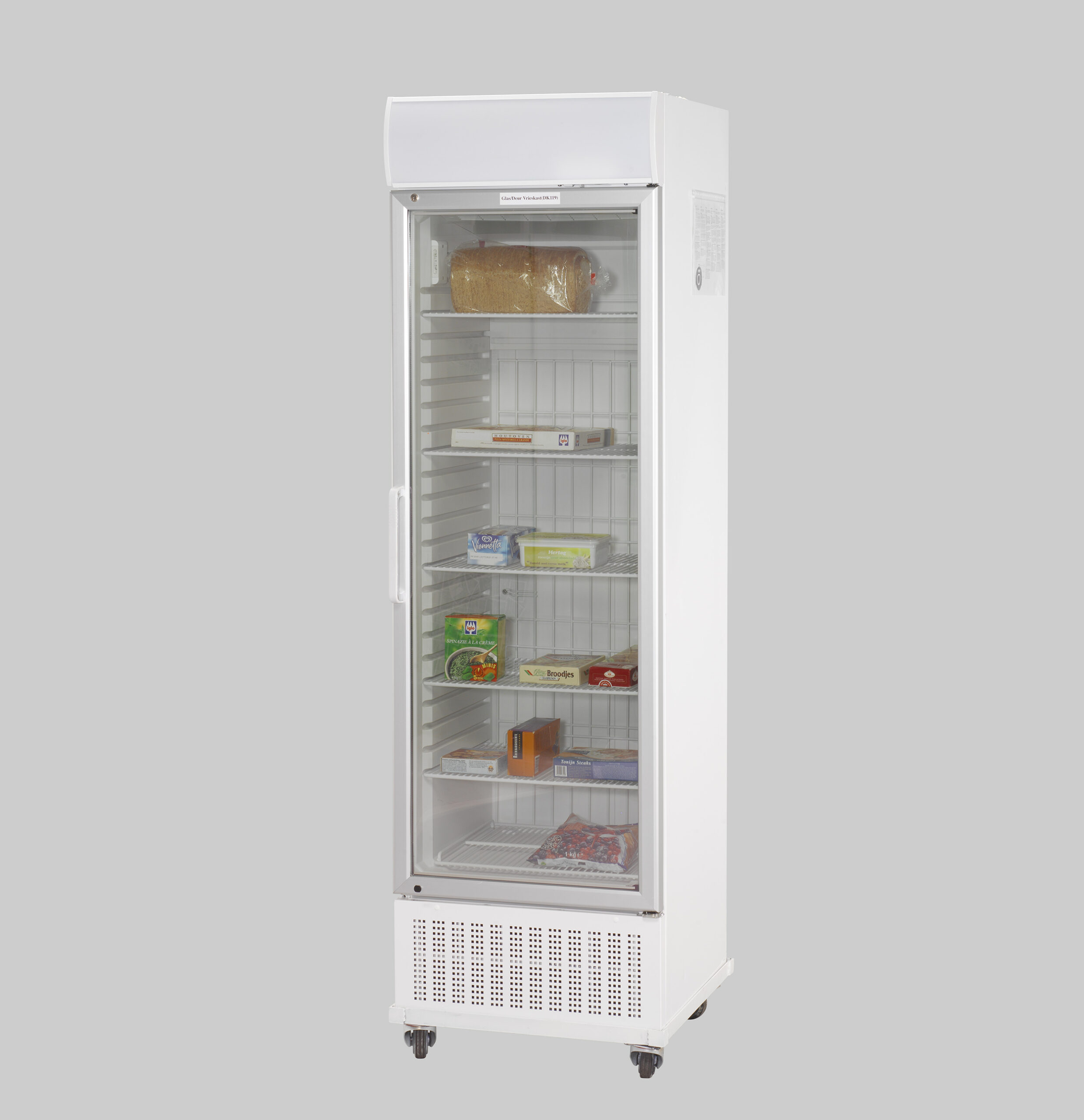 DK119Der Tiefkühlschrank ICY 336L in Weiß bietet ein großzügiges Fassungsvermögen von 336 Litern und eignet sich perfekt für die Aufbewahrung großer Mengen gefrorener Lebensmittel. Die Glastür ermöglicht eine einfache Übersicht über den Inhalt, ohne den Kühlschrank öffnen zu müssen. Durch die montierten Rollen ist der Kühlschrank leicht zu verschieben. Ideal für Events, Catering oder größere Küchen, die eine effiziente und zuverlässige Kühlung benötigen.